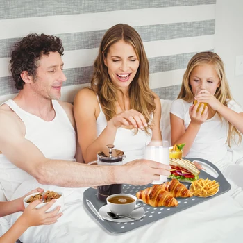 2PCS Non-Slip Food Serving Tray withHandle Shatterproof Plastic Dinner Trays Rectangle Gripping Nubs Food Trays for Home Kitchen