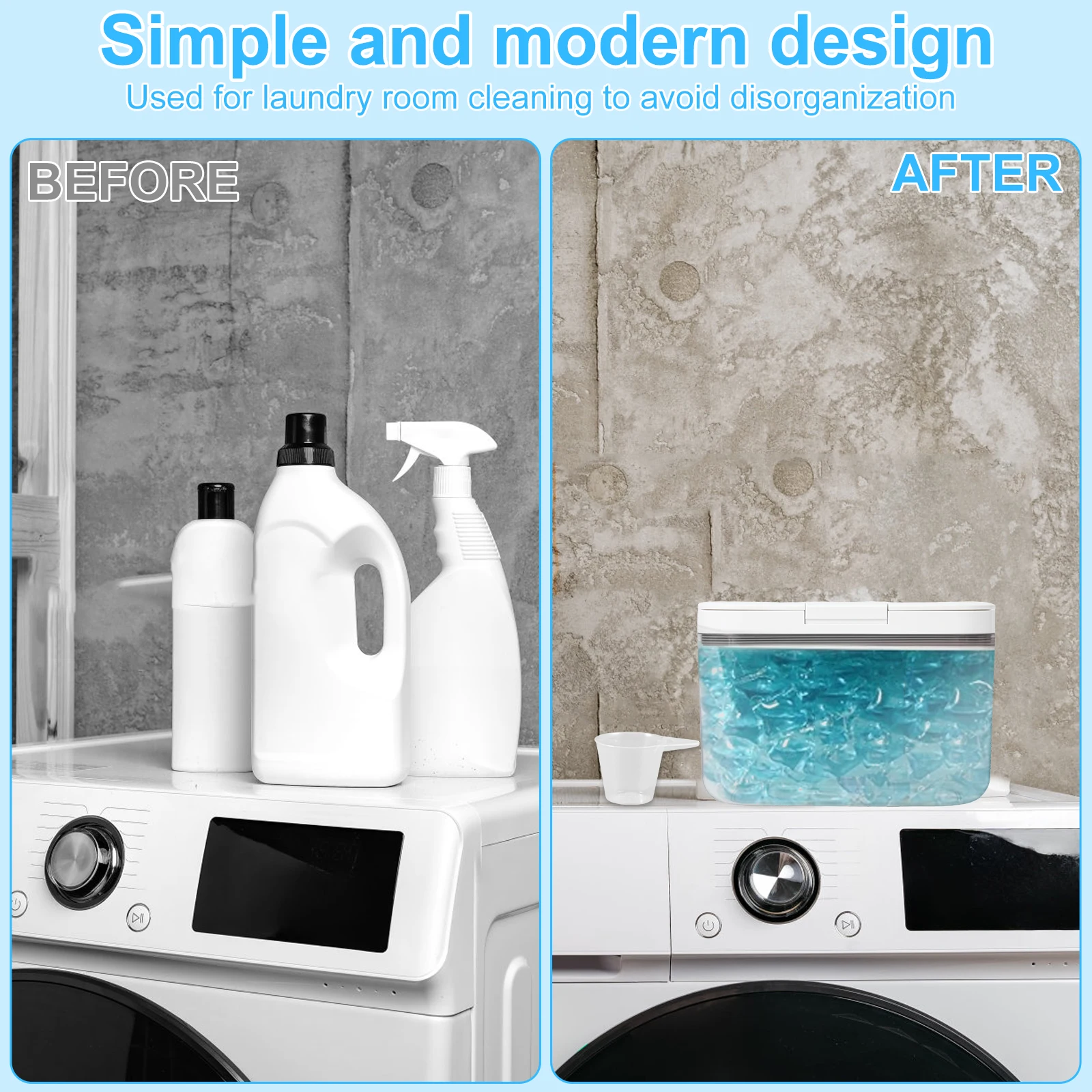 [Automatic Pop-Up Design & Clear Body] Our laundry pod container with lid features an automatic pop-up design that allows you to open and fill it with ease. It features a clear body so you can easily inspect the contents, and the waterproof and odor-resistant seal design keeps your laundry pods fresh and tidy
