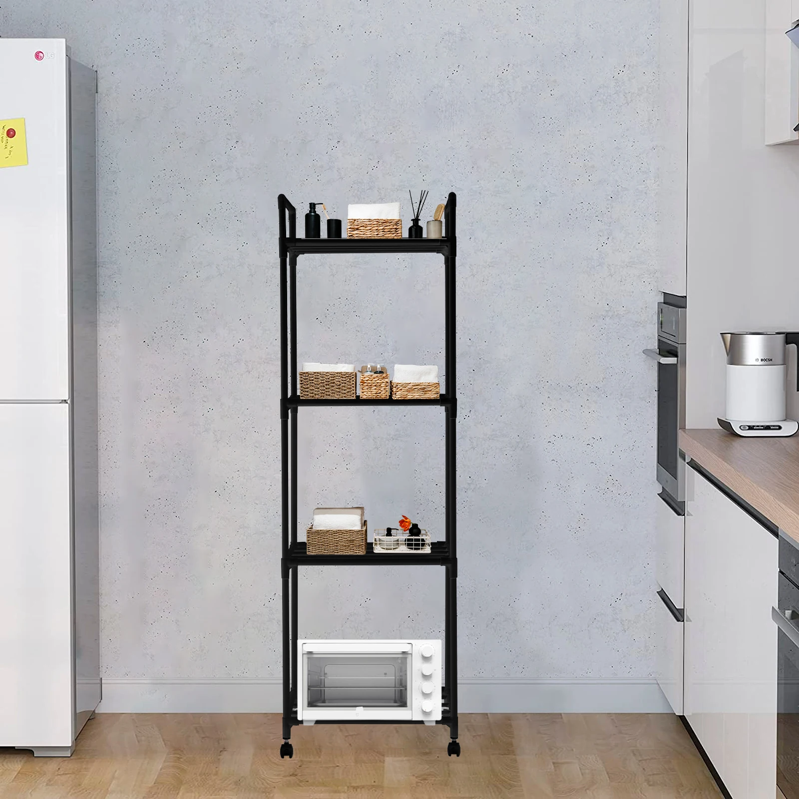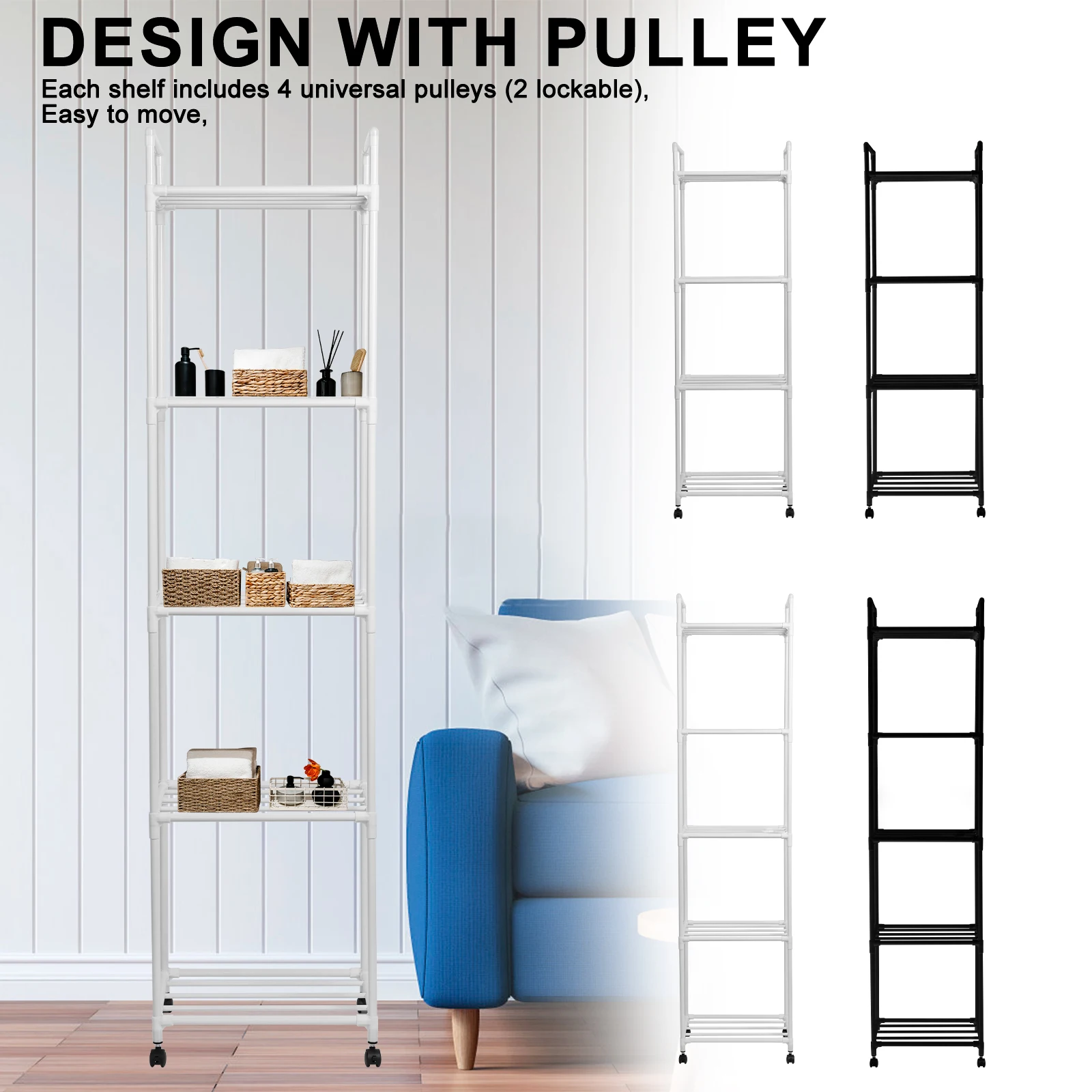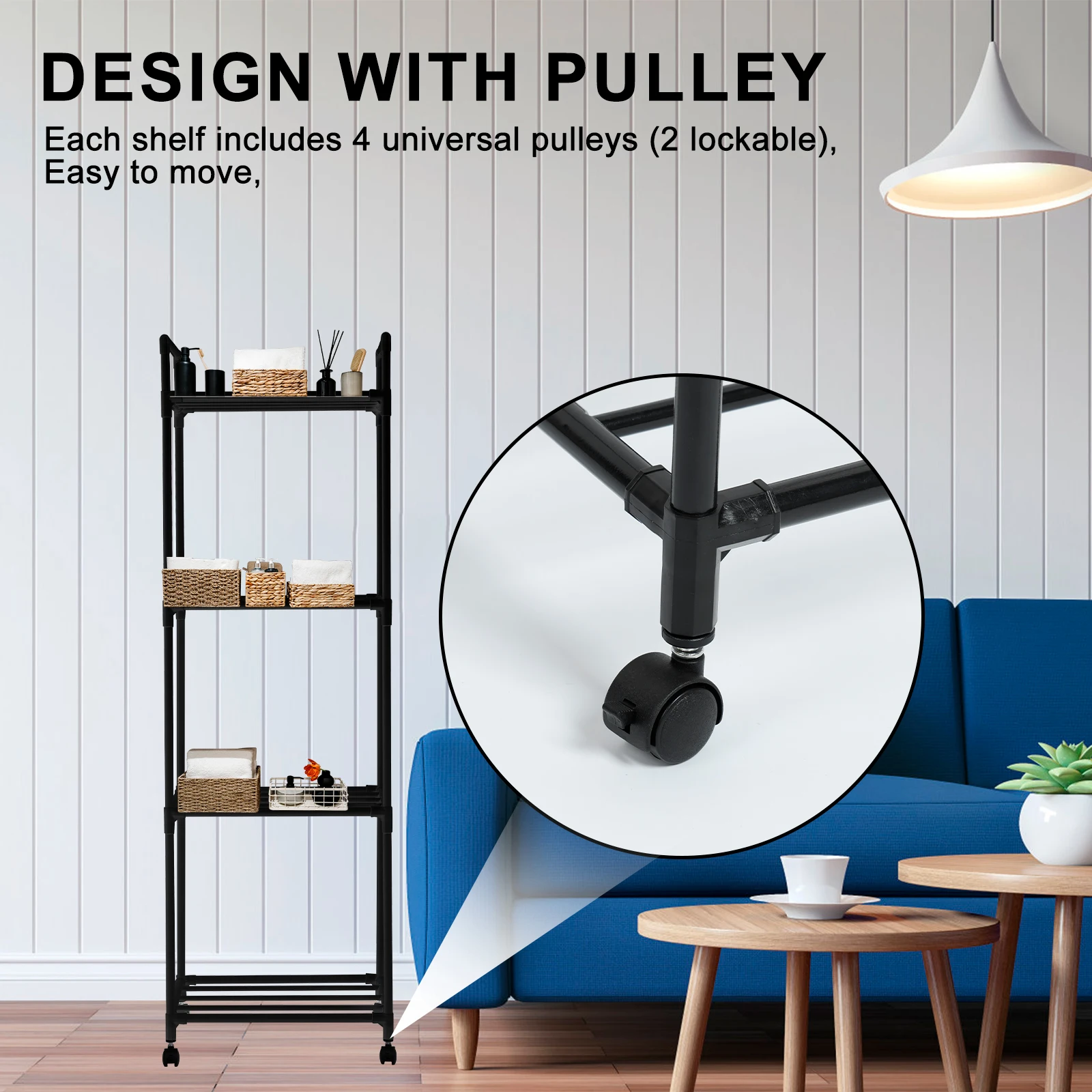 Pulley Design: Each shelf includes 4 universal pulleys (2 lockable), no need to move the shelves when cleaning, just push and pull them easily, it is also convenient to adjust the position of the shelves, and it can effectively protect your floor from scratches.